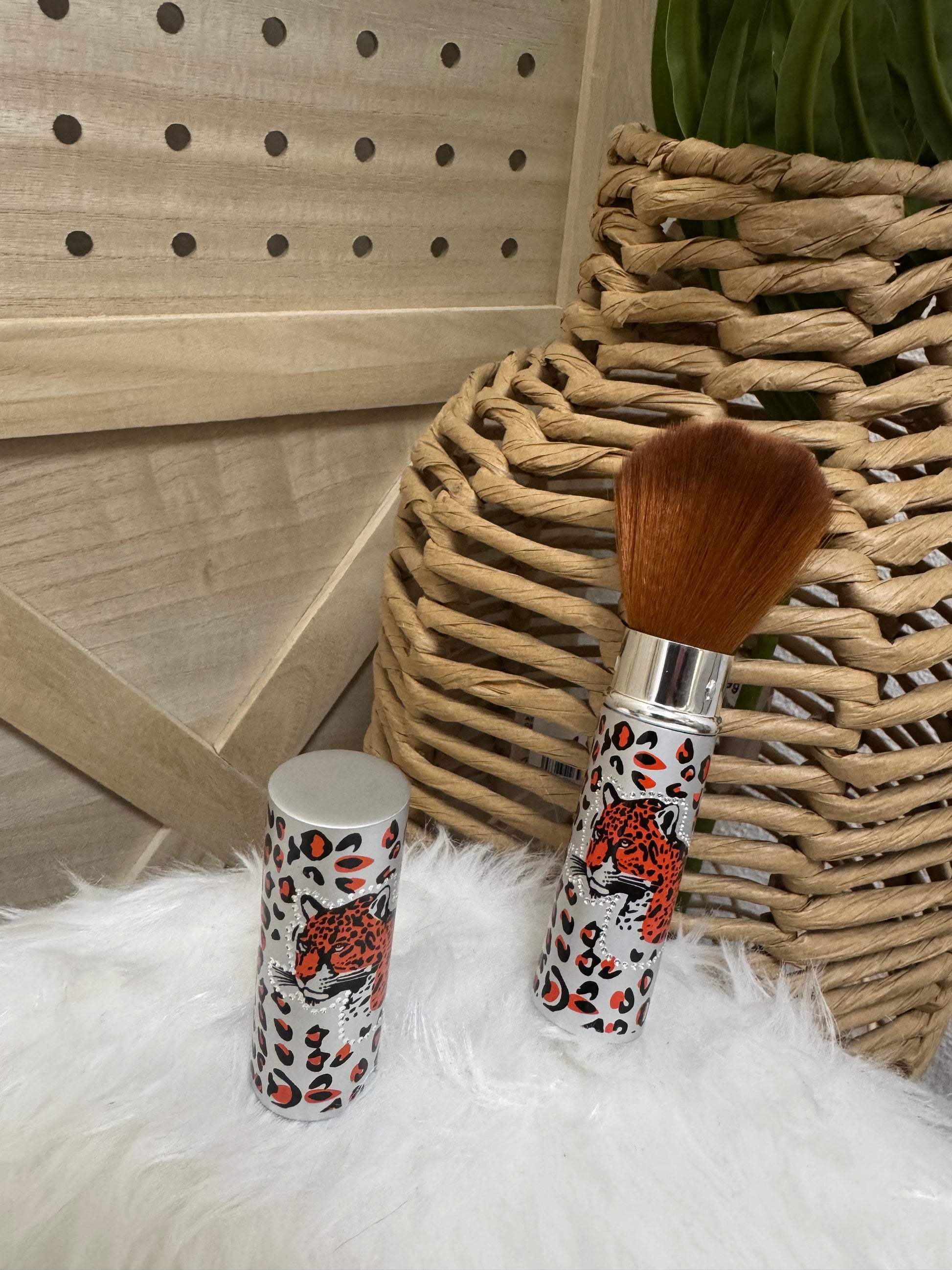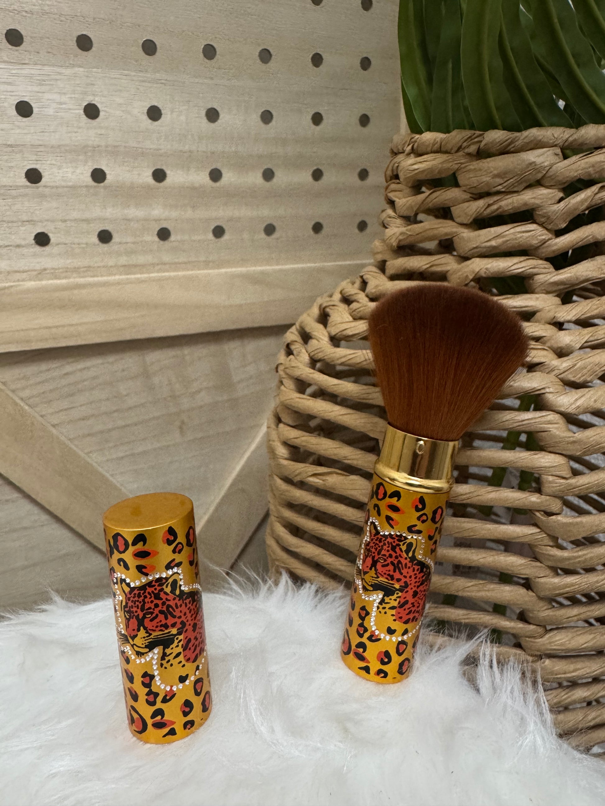 Brocha compacta y retráctil diseñada para proteger las cerdas gracias a su sistema con tapa. Ideal para llevar en el bolso o de viaje sin manchar el neceser. Su diseño animal print la convierte en un accesorio Beauty tan funcional como bonito.