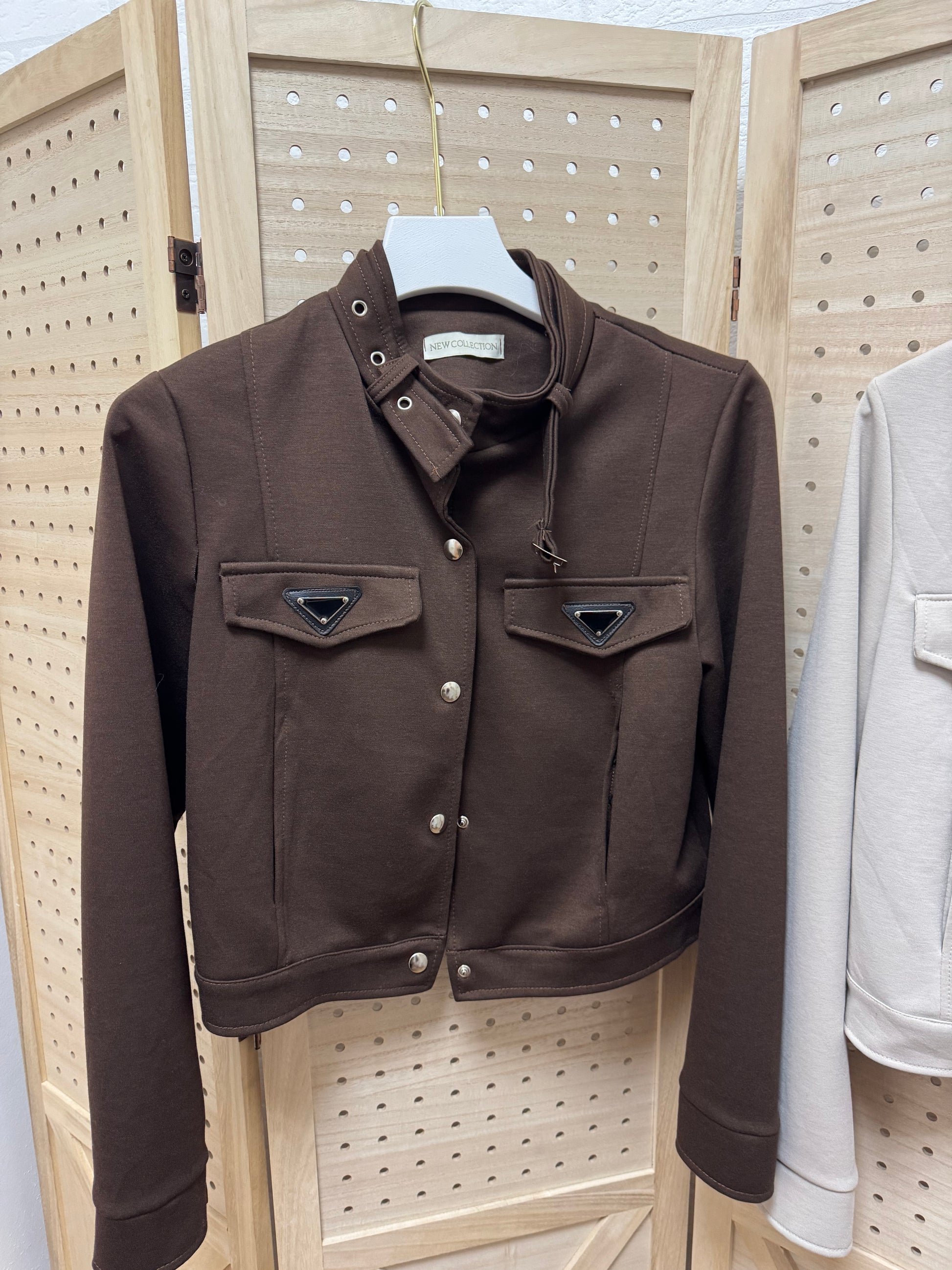 Con cierre frontal, detalle de bolsillos y un corte corto que aporta un aire motero chic, esta chaqueta es perfecta para completar looks casuales o dar un toque atrevido a outfits más cuidados.