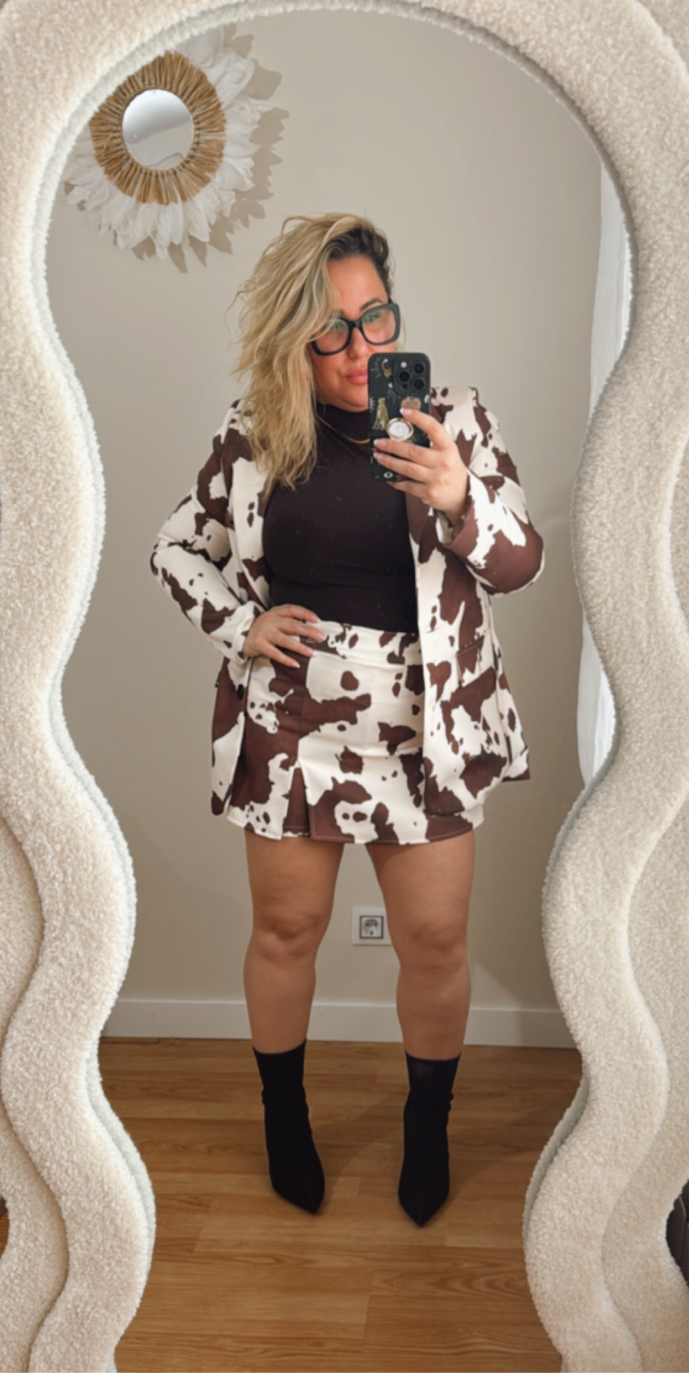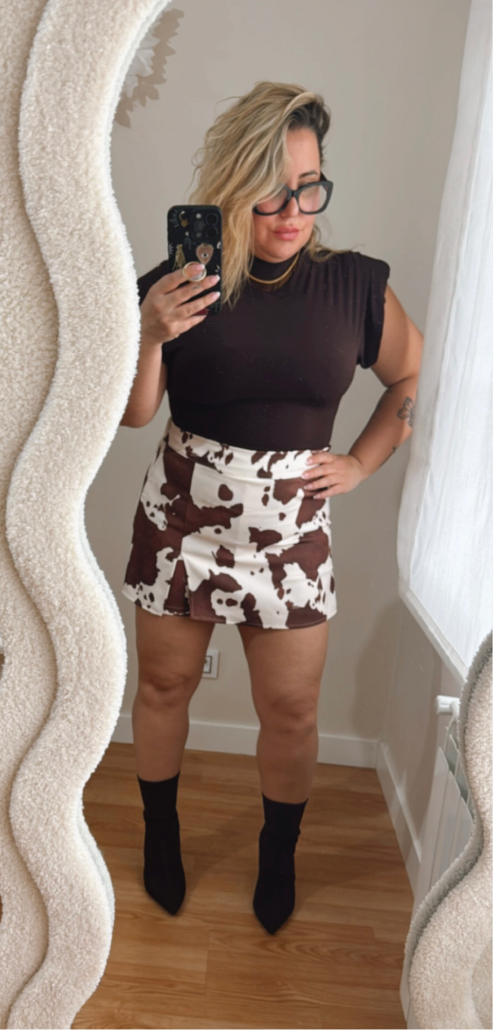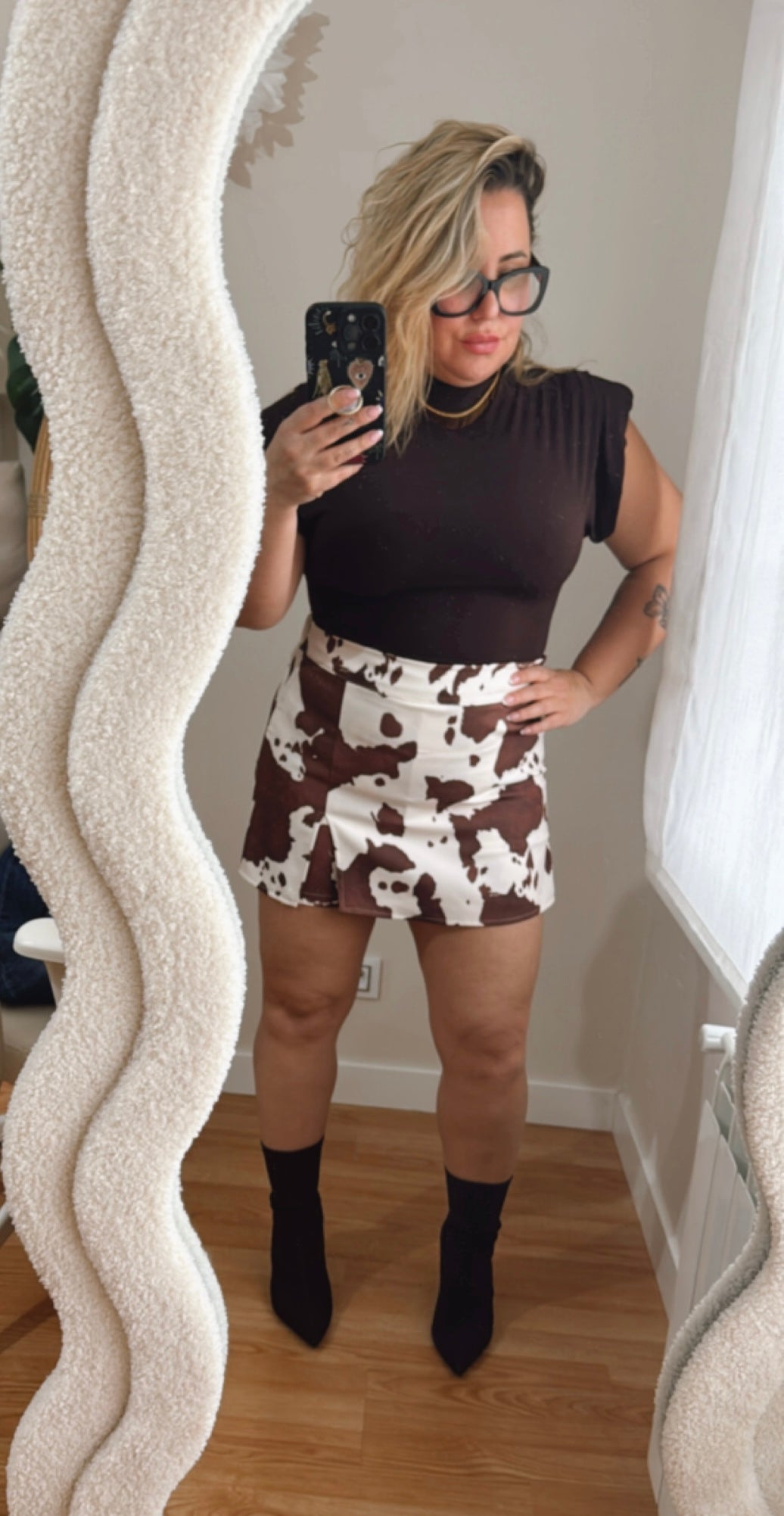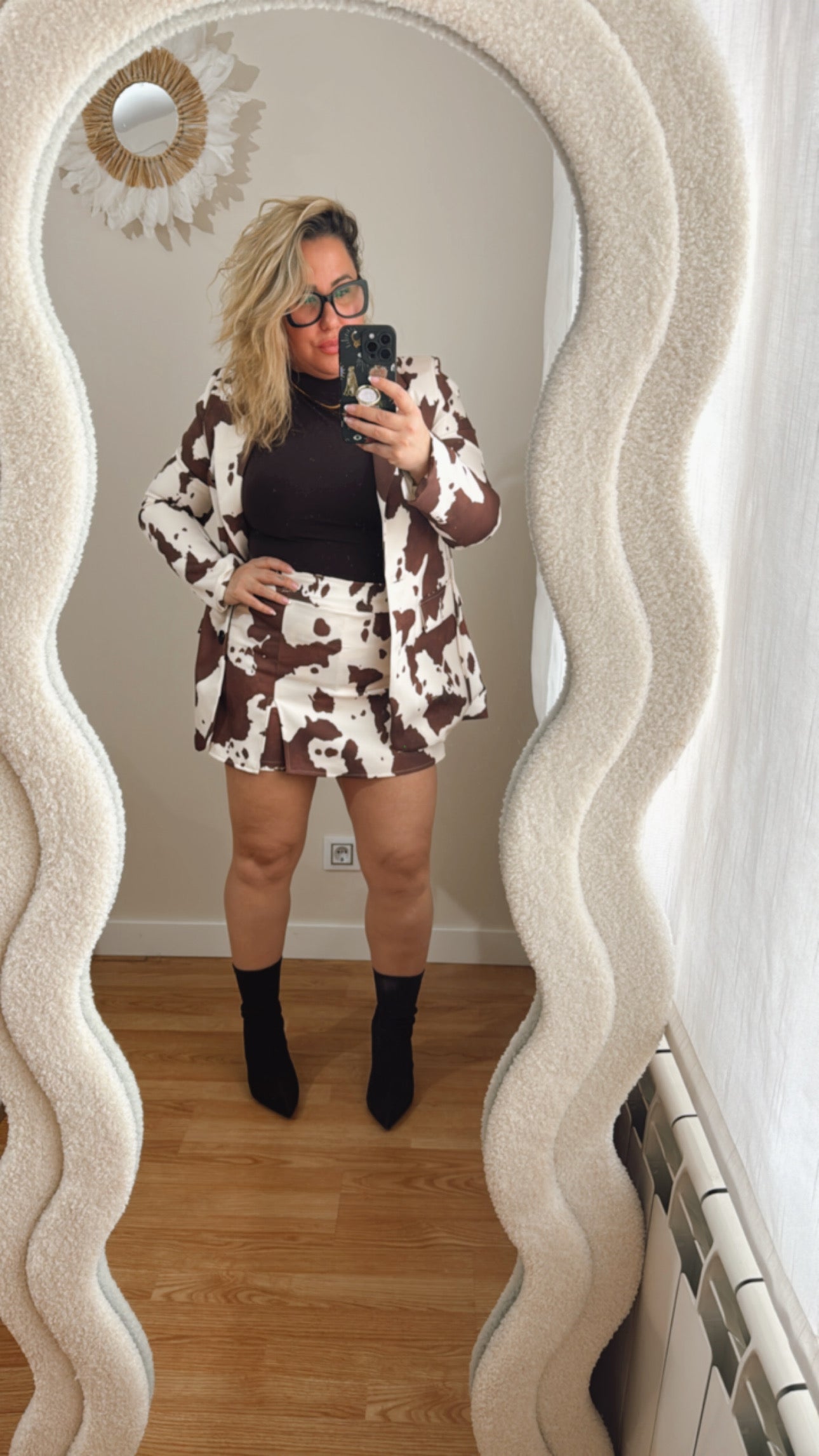 Si te gustan los looks con personalidad, esta falda pantalón cow print son un must en tu armario. Confeccionados en un tejido fluido y cómodo, tienen un corte favorecedor que resalta la figura. Llévalo con la blazer a juego o con un top básico para un look más relajado.