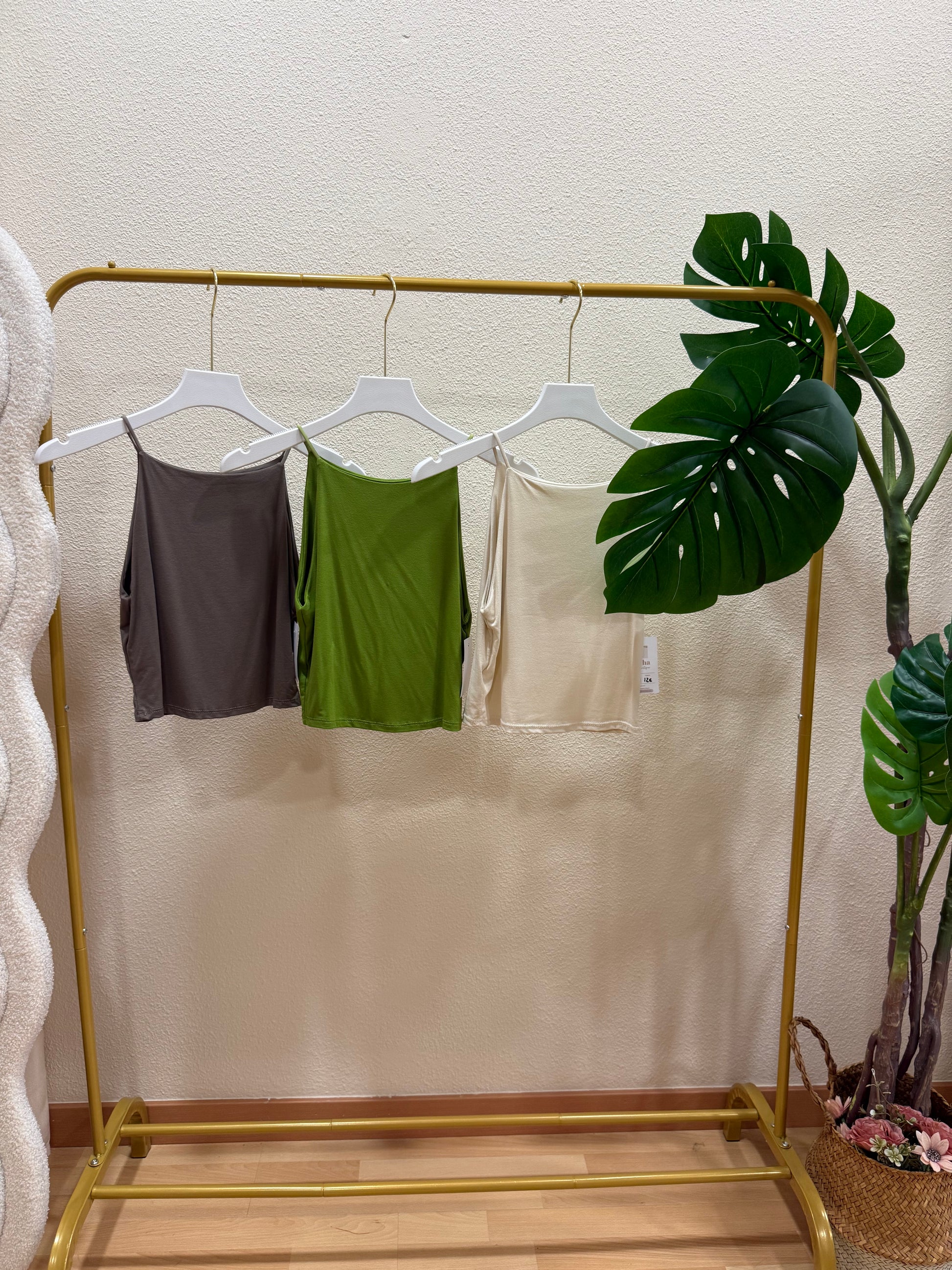 El Top Básico Fresh es un imprescindible para el verano: cómodo, ligero y súper versátil. Con tirantes finos y corte recto, es ideal para llevar con cualquier parte de abajo, desde vaqueros hasta faldas o pantalones fluidos.