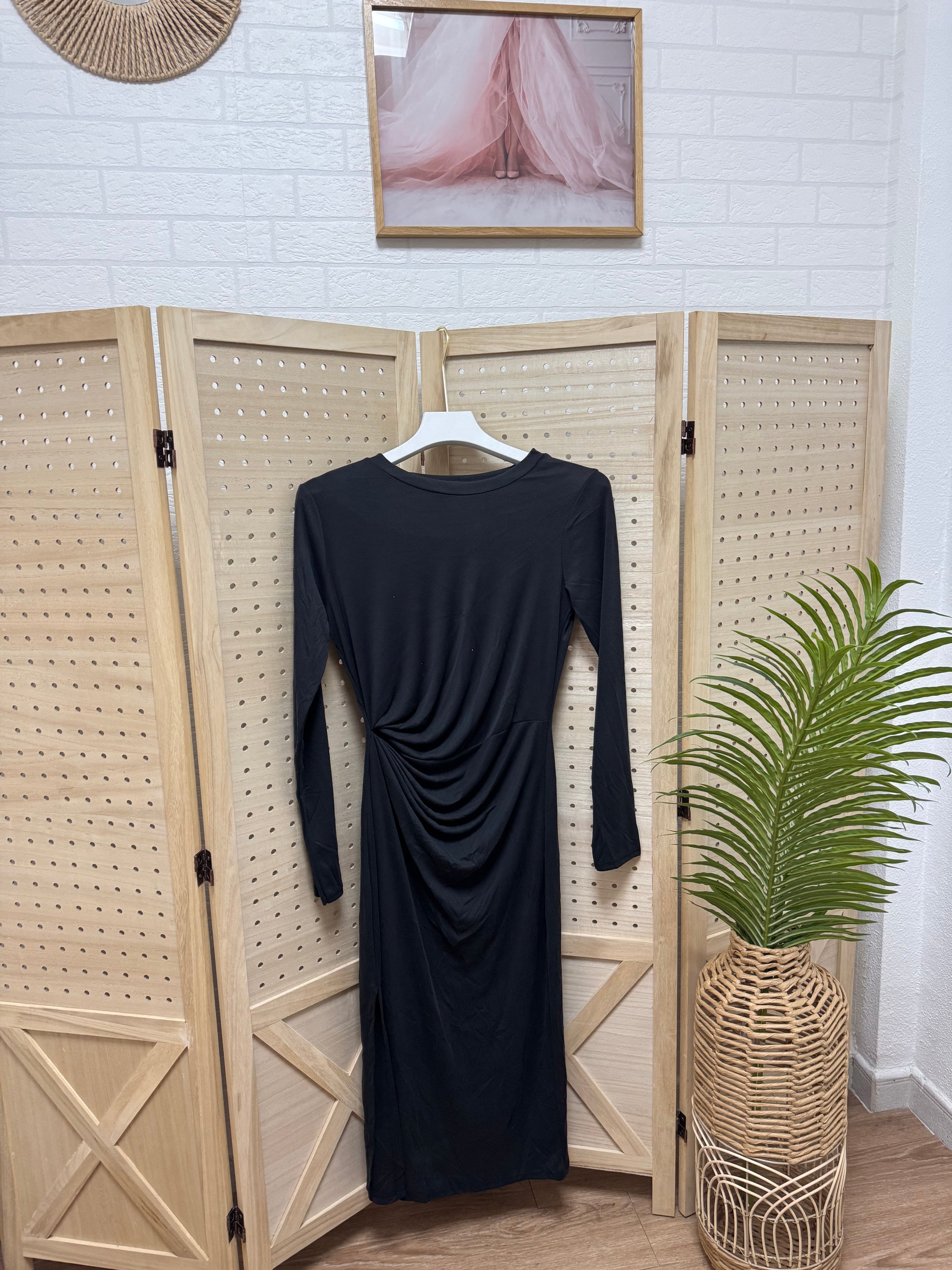 Vestido midi negro drapeado
